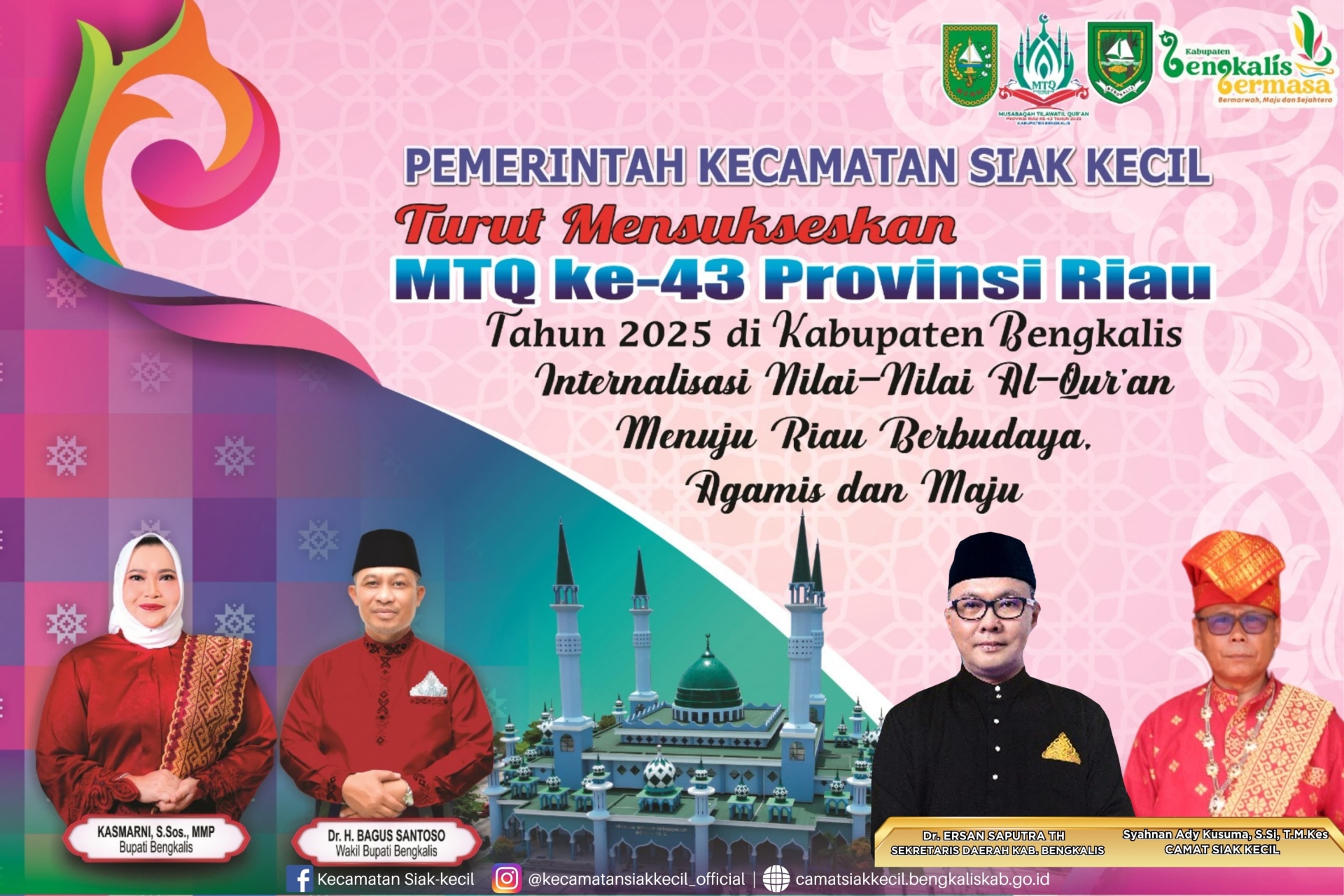 SIAK KECIL– Bupati Bengkalis Kasmarni didampingi Wakil Bupati Dr.H.Bagus Santoso secara resmi membuka Musabaqah Tilawatil Qur’an (MTQ) Ke-20...